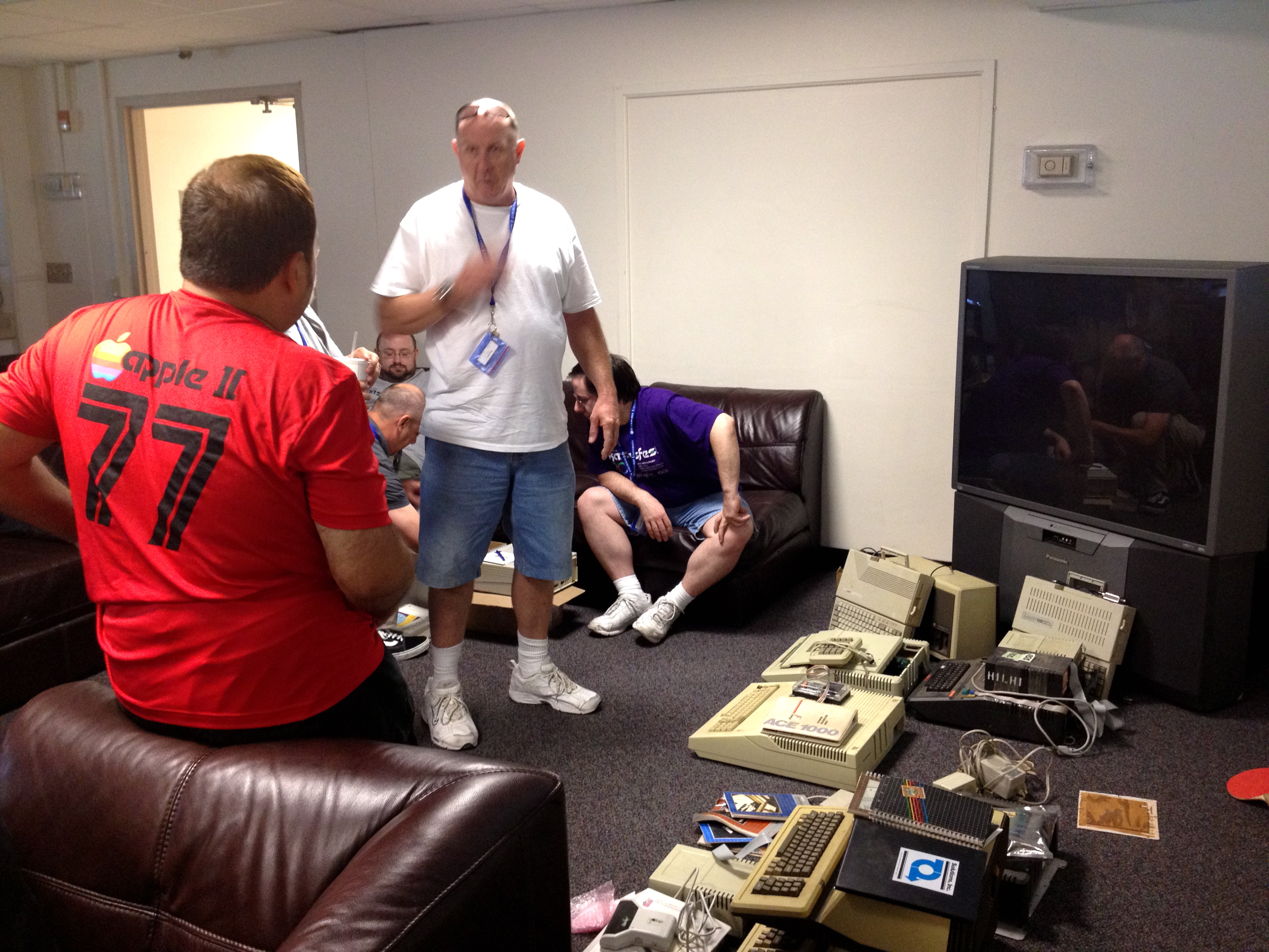 This year’s event was exceptionally (and pleasingly) busy with barely an idle moment, and I’m not sure how to enumerate the awesomeness. David, Earl, and Carrington recorded a live episode of RCR. Juiced.GS announced another year of publication. Ken and Mike of Open-Apple shared bloopers. Vince helped me build a Replica Micro-KIM. Martin released a new game and a nifty new programming language. Geoff schooled us on toolsets, CDAs, and NiftyList. Brian gave us an inside look into his Firefly documentary and the filming of Serenity. Randy shared his long history with Apple II software, Beagle Bros, and Appleworks. Romero captivated the audience with his stories of Apple II gaming and influence on modern gaming. Alex shared his robot, WALTR, and other projects. I got a shiny New Apple II User’s Guide. I bought a SuperProto prototyping card.