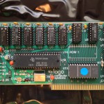 This card includes a 2 KB EPROM. A ROM (or EPROM) allows reliable software detection of the card. However, 2 KB is too large for this function alone. Since the 64 KB main memory of the Apple II is limiting for Logo, I expect the designers used the extra space for Logo-related code or data. I’ll examine the contents in a later post. There’s a second unpopulated (U14) ROM footprint. Perhaps LCSI considered using lower density EPROMs or more EPROM.