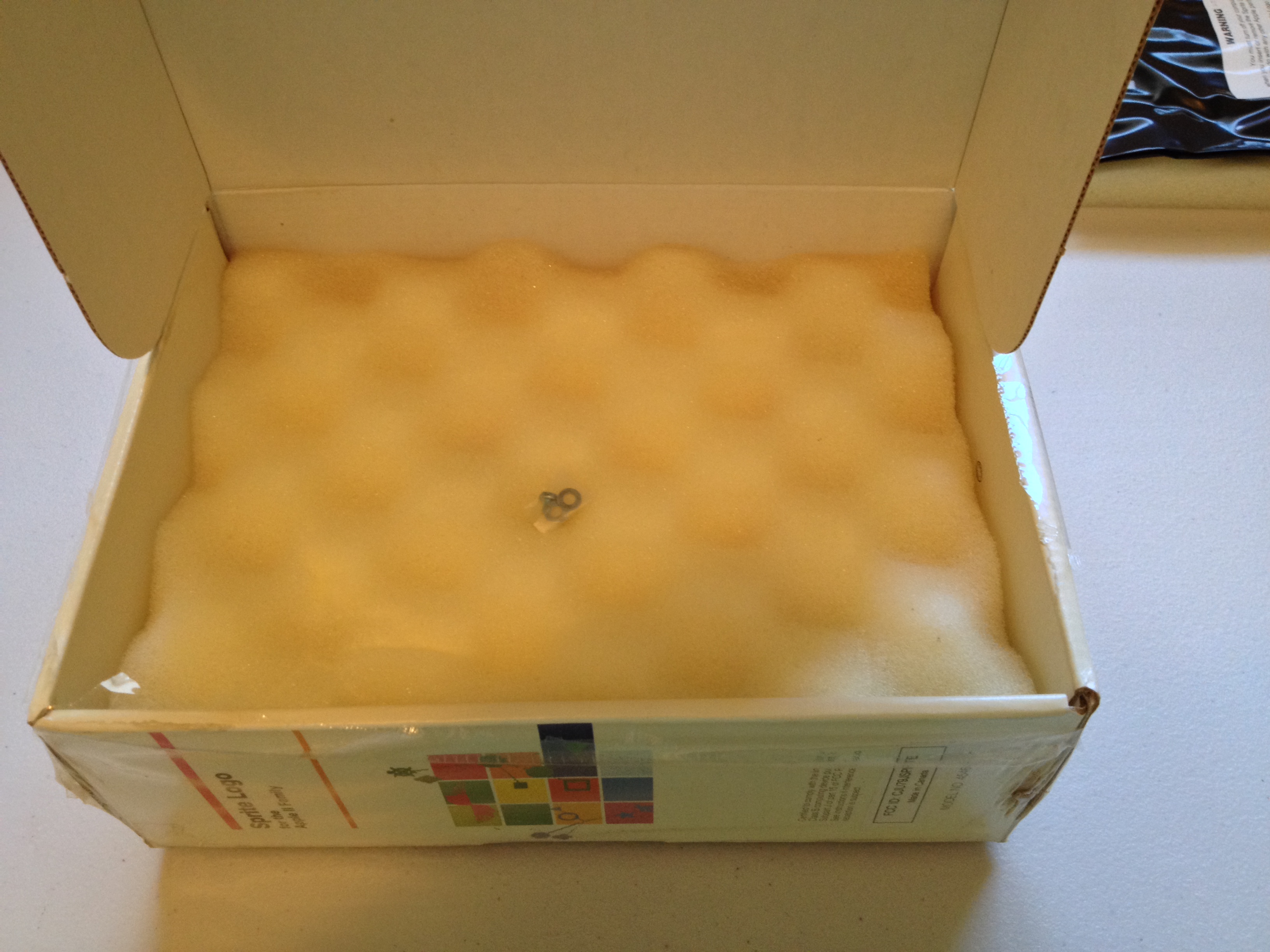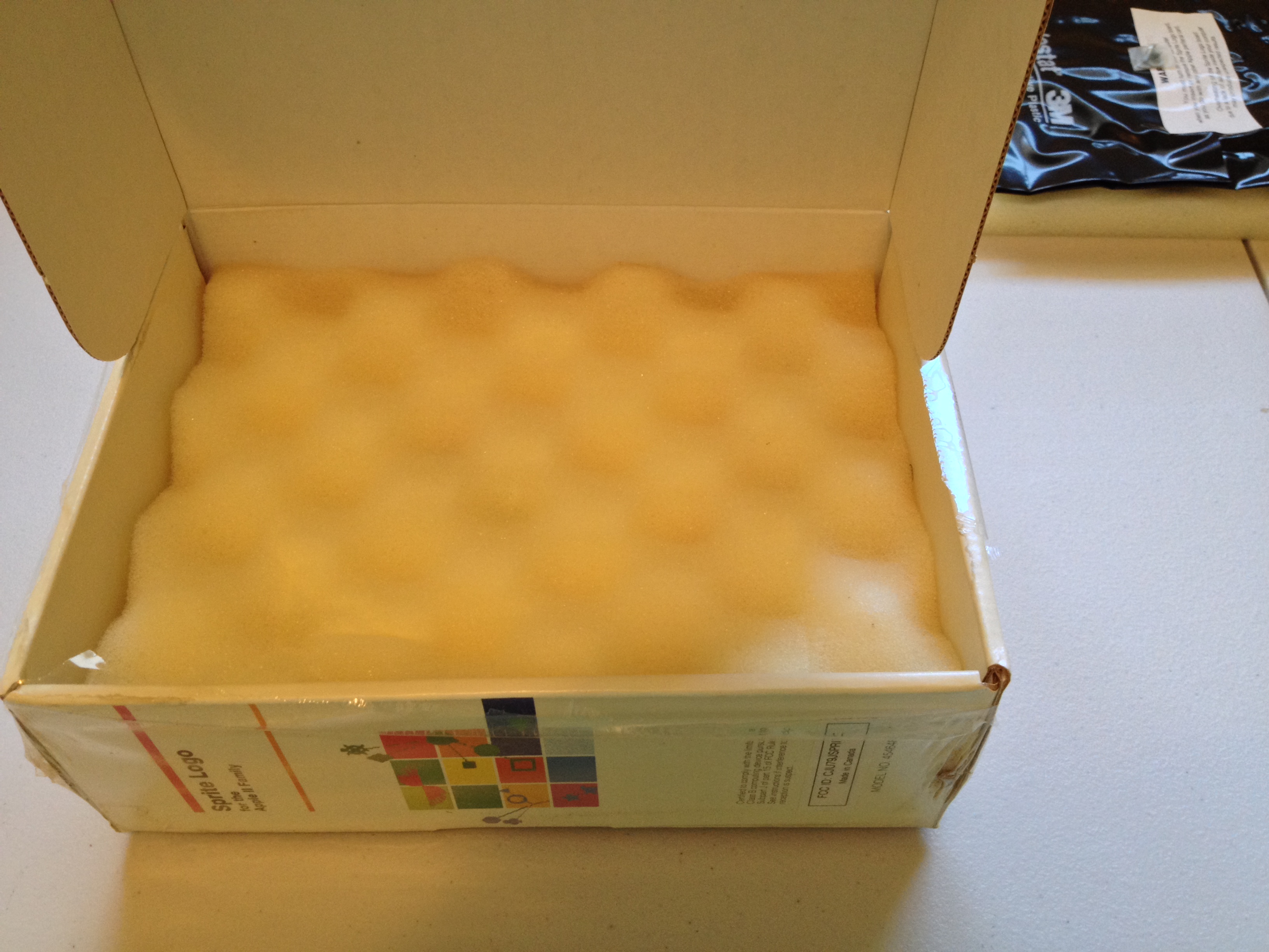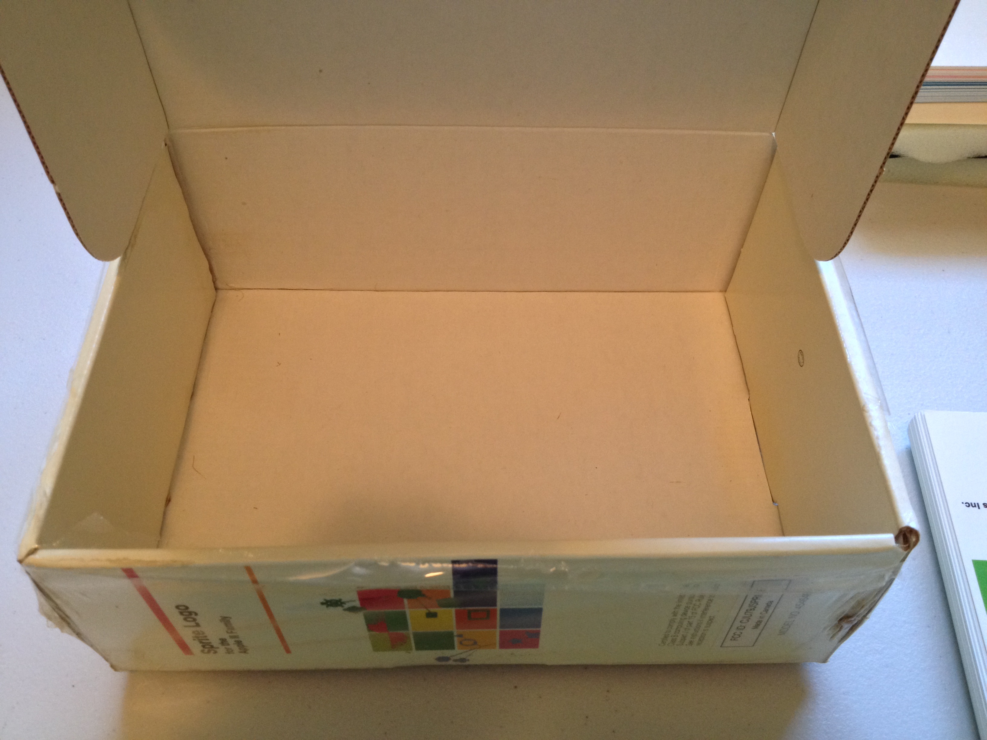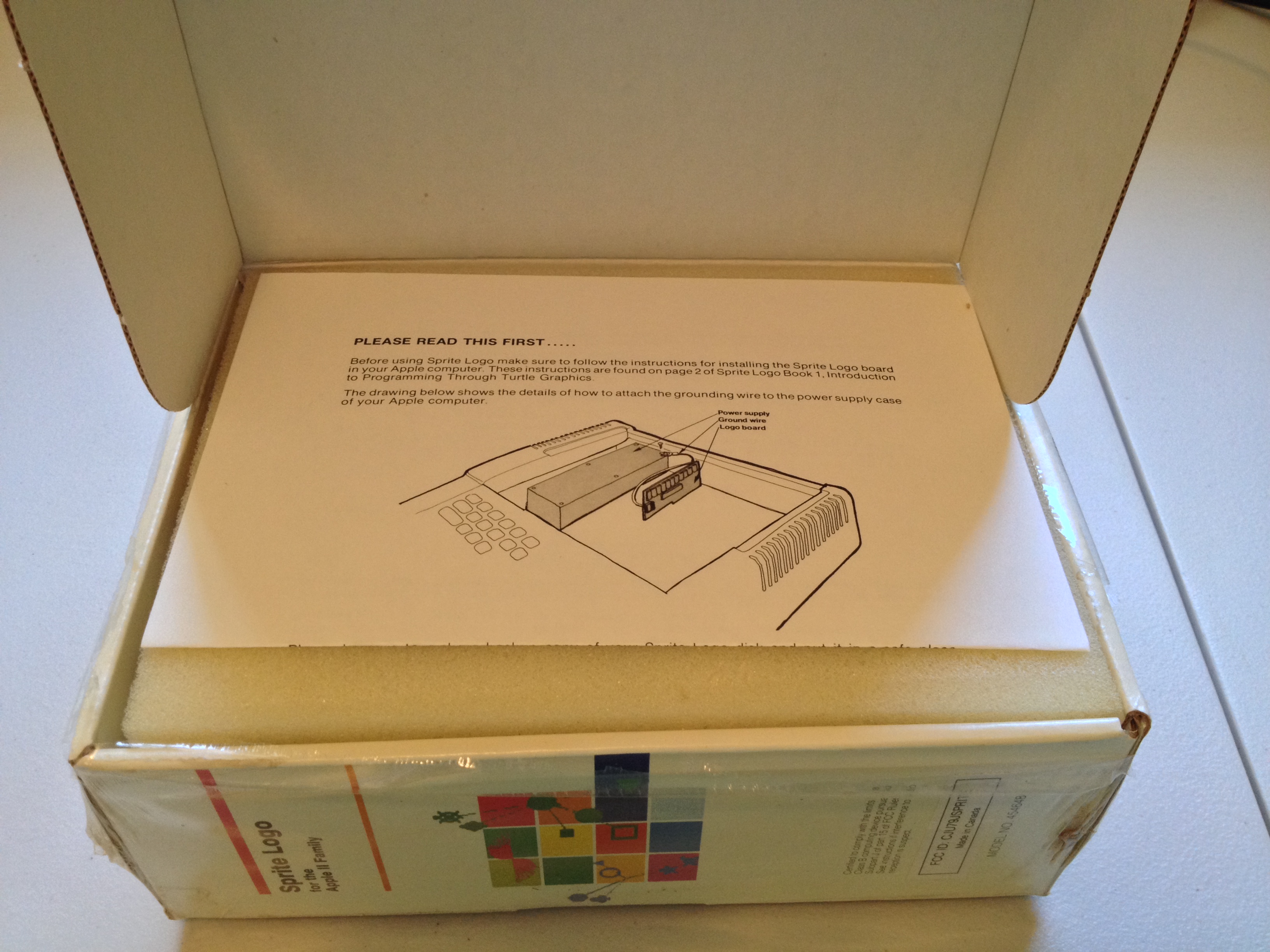 Continuing my exploration of LCSI’s “Sprite Logo”, let’s break the shrink wrap and open the box. These photographs preserve the original packing order. Despite dirt and water damage to the exterior, the box contents appear pristine.